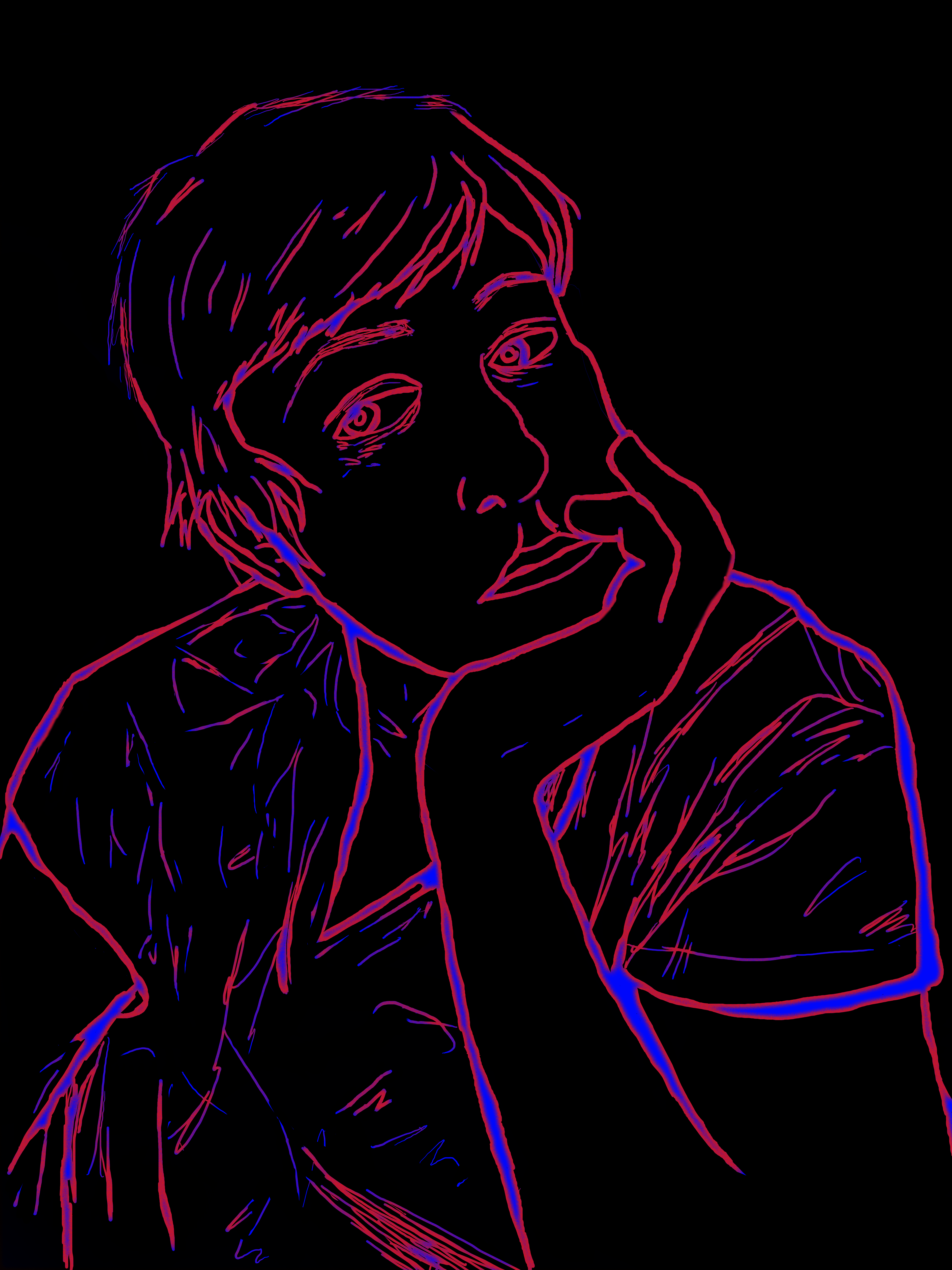 Starting with a live sketch from observation, I captured the subject’s pose and mood with expressive line work. I then transitioned to a digital workspace where I reinterpreted the portrait using neon color overlays, focusing on dynamic contrast, layered stroke effects, and simplicity. The minimalistic yet electric style emphasizes emotion while keeping the form clear and fluid.